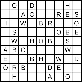 Each row, column and 3x3 square contains the letters in the word or phrase exactly once